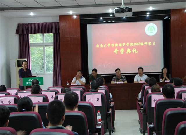 9月12日上午10点, 2018级硕博新生开学典礼在植物保护学院四楼报告厅隆重举行。校长助理王进军教授、党委书记王亨洪、院长刘怀、党委副书记李玉胜、副院长青玲出席了此次活动。学院博硕导师、研究生辅导员以及2018级全体研究生新生参加了此次活动。