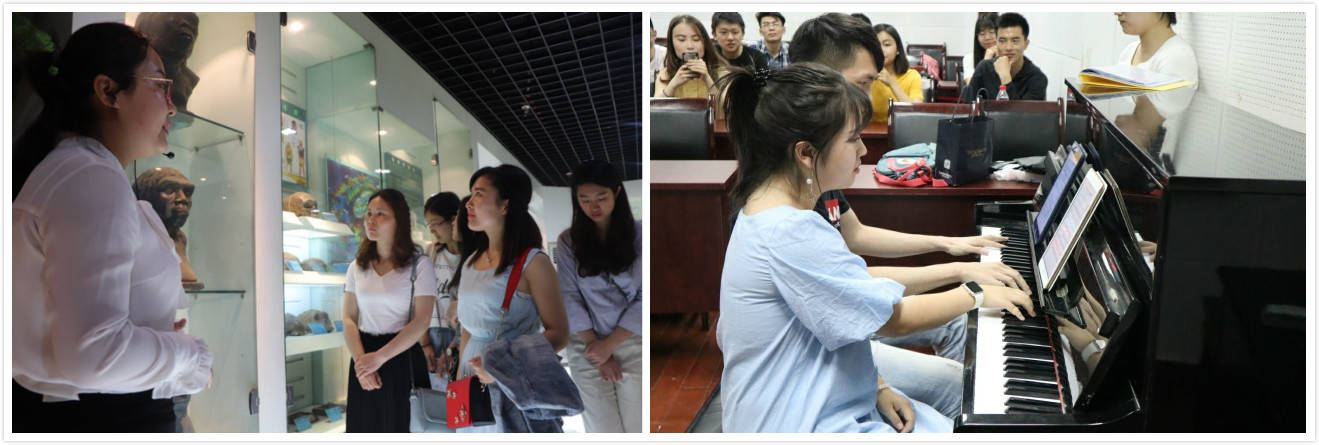 在第二周的活动中,同学们在地理科学学院同学们的带领下,相约美丽星空,畅游地学之旅。天文科普纪录片《旅行到宇宙边缘》揭开了宇宙的神秘面纱;模拟流星雨为同学们带来了一场视觉盛宴;而天文地质馆中姿态万状的岩石和化石则让参观的同学感受到了地球沧海桑田的变迁。第四站的音乐学院则为所有人精心准备了一场小型音乐会,同学们在钢琴四首联弹、美声演唱、琵琶独奏等众多节目中学习了不同乐器的结构与基础知识,领略了音乐带来的无穷魅力。
