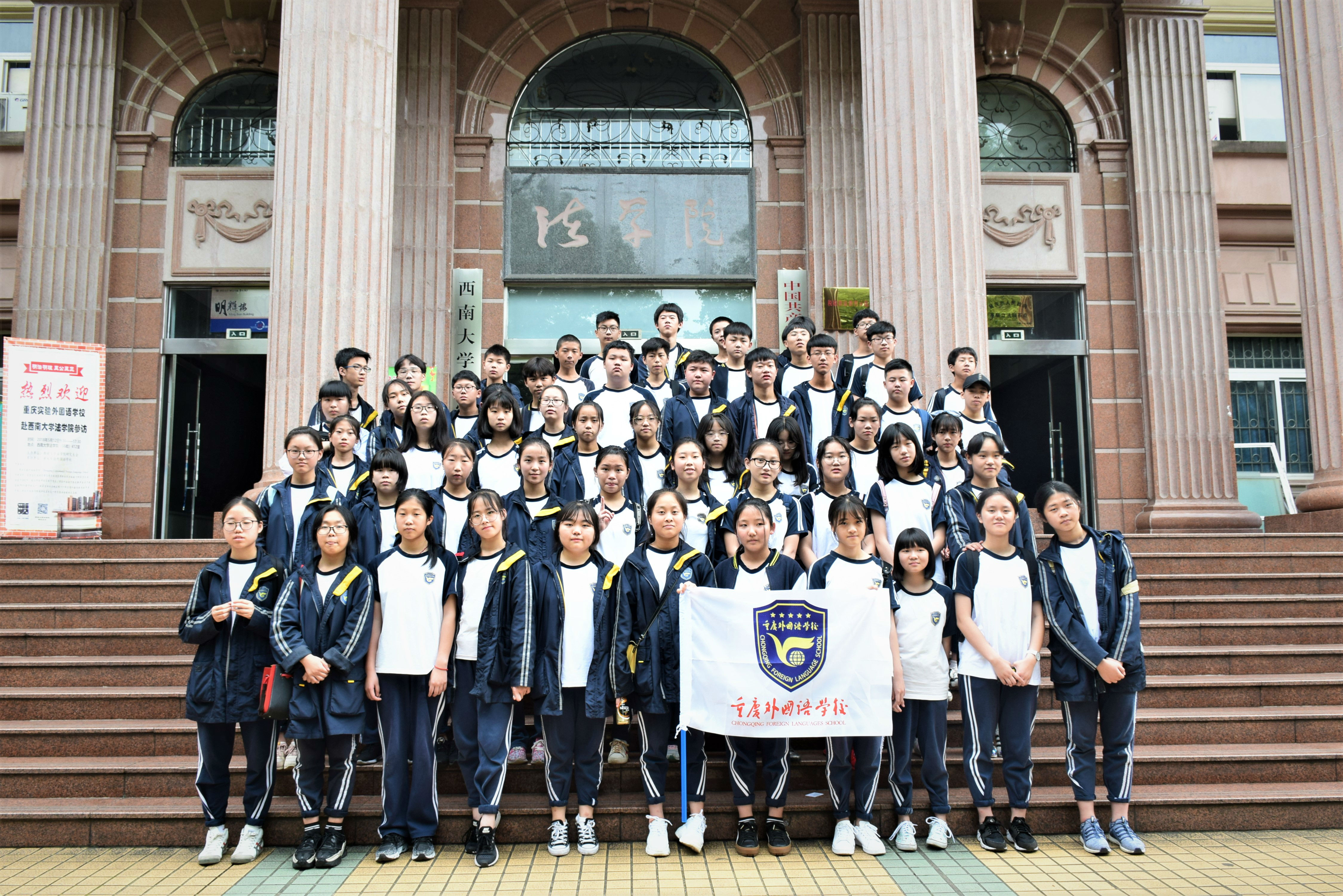 上午9点30分重庆实验外国语学校的老师和同学们在法学院研究生会成员的带领下依次参观了PA视讯法学院(38教/明辨楼)、蚕学宫与共青团花园和竹园学生宿舍。