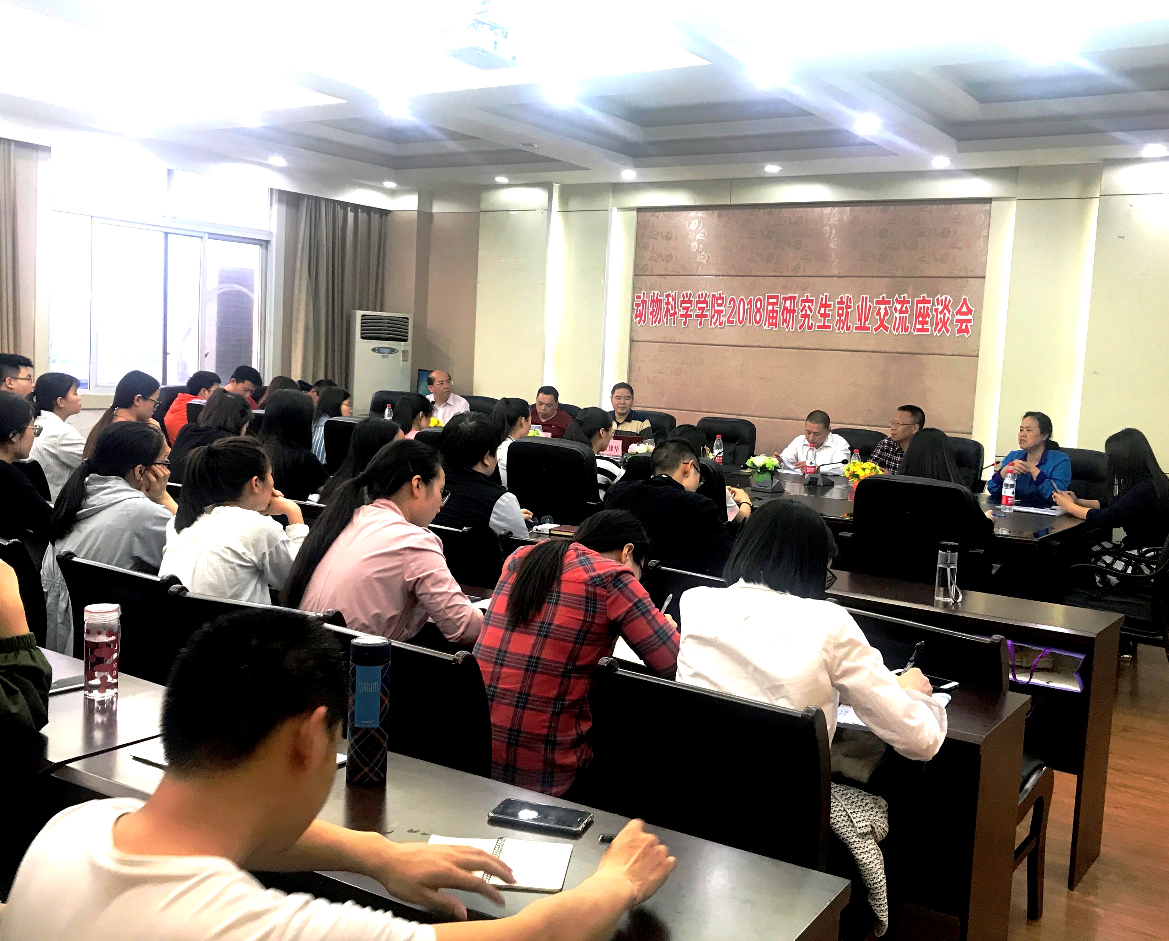 活动开始,刘娟院长首先讲到我们研究生找工作,不仅仅只是一个就业问题,如何定位自身和应聘单位的关系,了解社会、国家、行业的需求,认清研究生应具备的素质是我们成功的先决条件,对我们找工作有指导意义。学院党委书记朱汉春对前来指导的3位专家表示真挚的感谢,鼓励在座研究生踊跃发言,针对找工作、面试、就业择业等相关问题积极向老师提问交流。