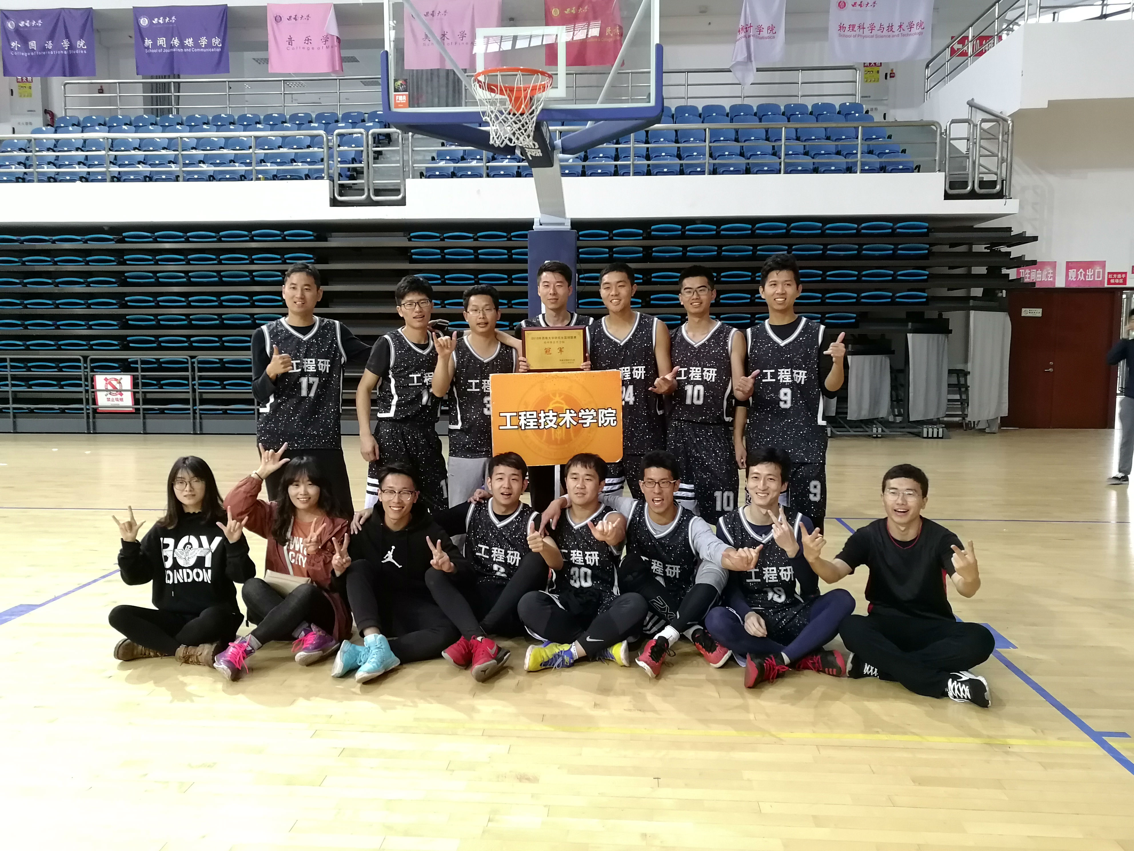 战鼓喧天,呐喊如雷。比赛开始,资环男队率先得分,但工程技术学院研究生队也不甘示弱,一计三分球后引领得分狂潮,并逐渐将比分追平。第二、三节是双方得分大节,资环男队凭借精湛的球技和默契的配合将分差进一步拉大,第四节工学院研究生队强势反击,险些对资环男队造成威胁,资环学院迅速调整战术,利用分差优势打时间战,积极传球,最后以31:24的比分战胜工程院,再续冠军辉煌,工学院研究生队荣获南部赛区男子组冠军。