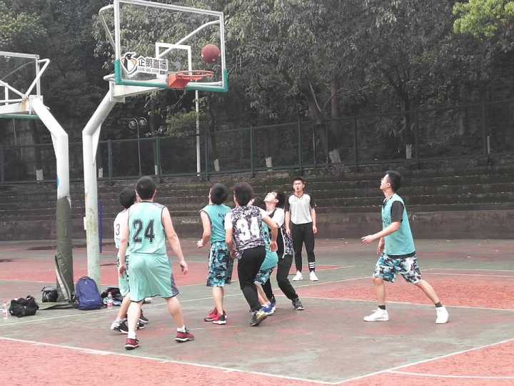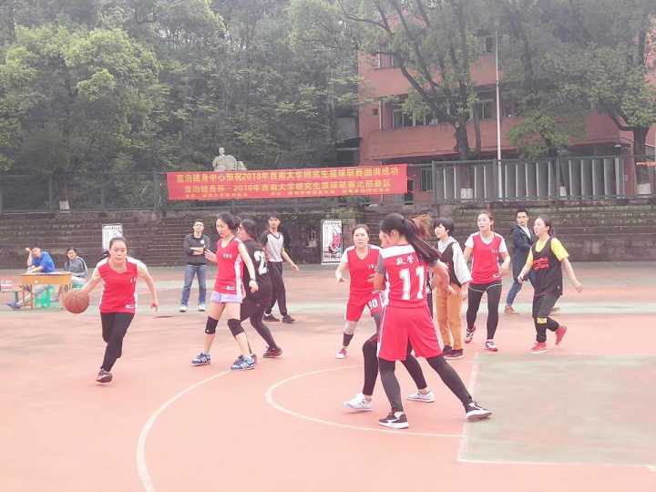 三号场上,政管女队与材料女队的比赛也在如火如荼进行之中。队员们你追我赶,铿锵气势丝毫不亚于男队,场面异常火爆。政管女队先以点球和连续的两分进球遥遥领先,场下助阵的观众们掌声连连,喝彩的欢呼声此起彼伏。材料女队也奋起直追,在休息时刻不断商讨“战术”;每个队员都用心跑位,为队友作掩护,配合上篮。双方拼抢激烈,带球、运球、投篮等一系列动作潇洒、规范,果真“巾帼不让须眉”!场上无女孩,奔跑着的是一群英姿飒爽的女队员。比赛最后,政管女队以33:18夺得桂冠。