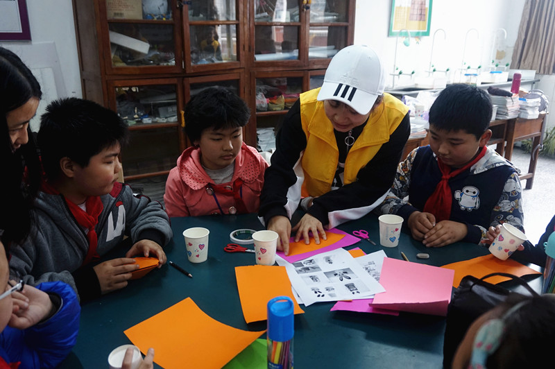 活动课上,志愿者们向孩子们提供手工作品模型,引导他们展开发散式思维,创造自己头脑中的作品。每一位孩子都积极动手,相互帮助,利用彩纸、纸杯和水彩制作出各种灵动可爱的手工作品,动手能力和创造能力得到充分发挥。室外活动中,志愿者们组织并共同参与了传球接力比赛,孩子们热情高涨,配合默契,玩得乐此不疲的同时,更加拉近了师生距离。志愿者也将篮球送给班级体作为奖励,孩子们脸上洋溢着欢喜和激动。