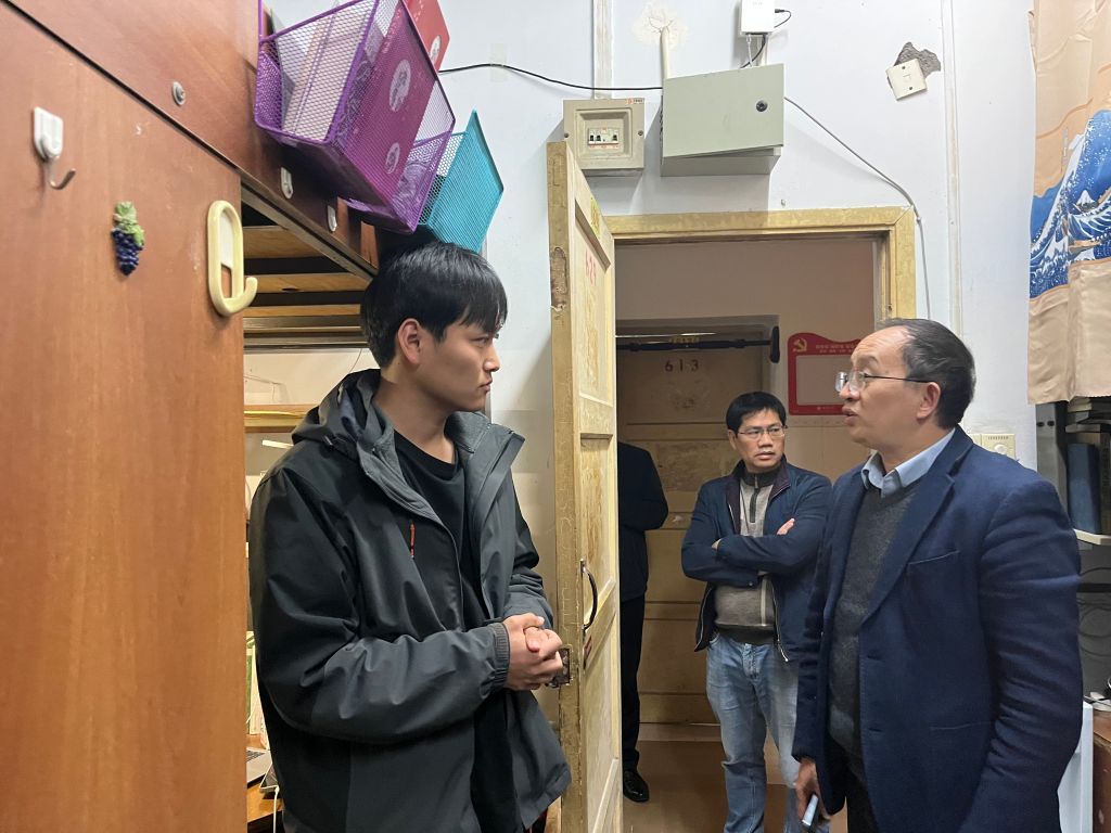 3月13日晚,学院院长潘孝富、党委副书记李长松、副院长郭美云及研究生辅导员汪全洲深入研究生寝室,走访调研研究生日常居寝学习生活情况。
