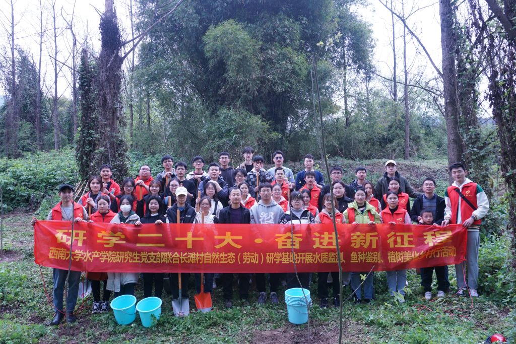 为深入学习宣传贯彻落实党的二十大精神,积极响应时代号召,学以致用助力乡村振兴,3月19日上午,水产学院2个学生党支部联合重庆市北碚区长滩村自然生态(劳动)研学基地开展“研学二十大 奋进新征程”主题教育活动。水产学院学生第一党支部书记尹斌、第四党支部书记陈拥军以及党支部党员、入党积极分子参与了本次活动。