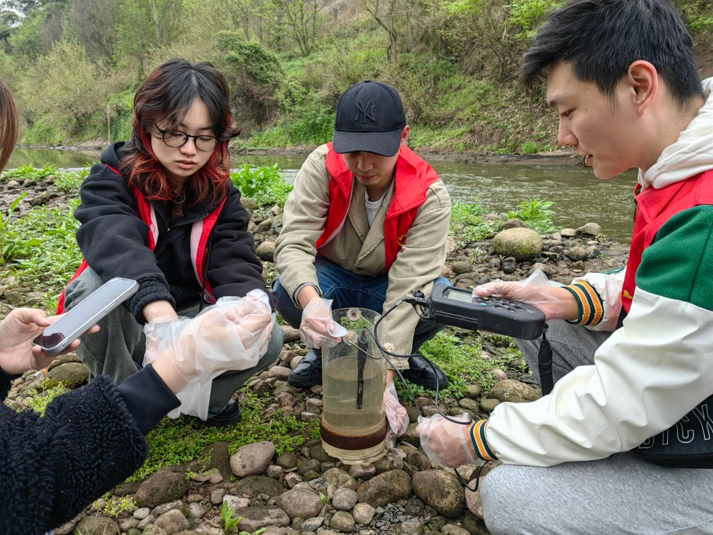 据兴村书记侯晓龙介绍,长滩村目前正着力发展休闲垂钓,村里的养殖水源均来自于轨道6号线开挖隧道渗出水。为支撑该村生态环境保护,助力休闲渔业绿色健康发展,党员志愿者们结合专业特色,发挥学科优势,对该流域水体温度、电导率、溶氧、氨氮含量以及酸碱性等关键性指标进行了实时水样检测,为当地养殖水环境保护提供了数据参考,增强了村民们的水资源保护意识,为长滩村乡村振兴、生态文明建设贡献青春力量。