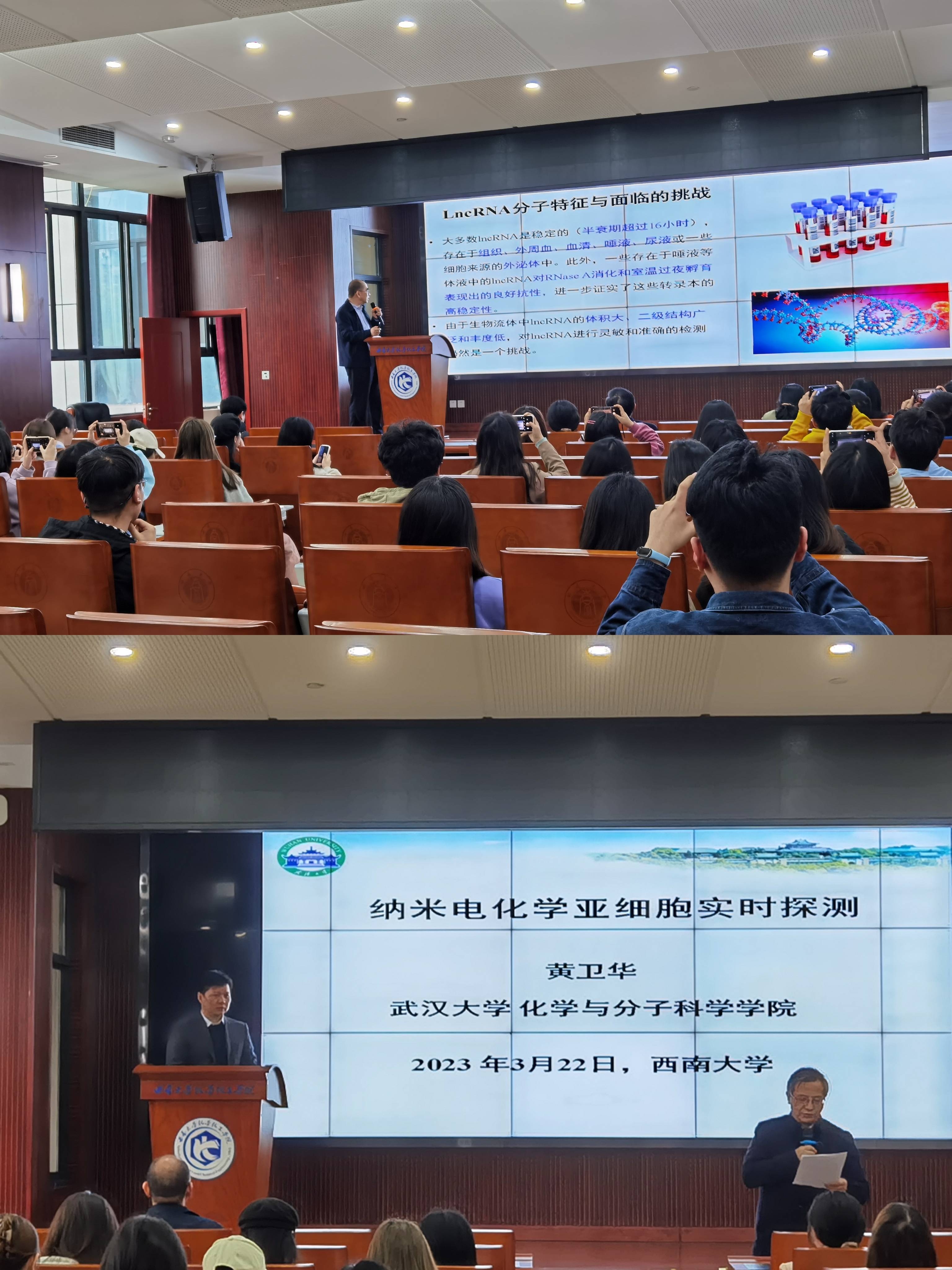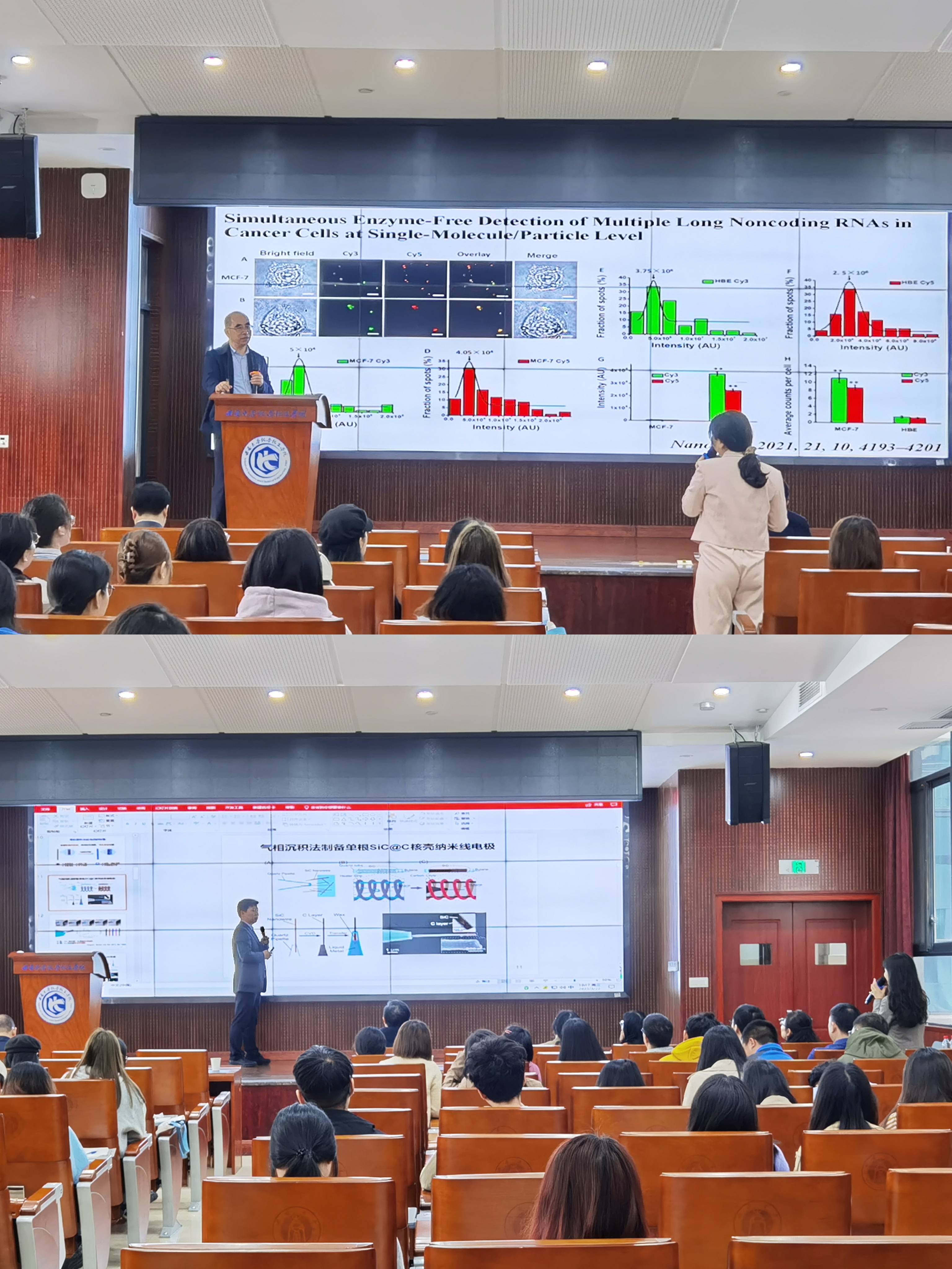 两位教授都曾多次来到PA视讯化学化工学院进行学术报告交流。在互动提问环节,张春阳教授、黄卫华教授与学院师生进行了热烈讨论,同学们就自己的科研情况与两位教授进行了积极的交流。现场气氛活跃,在与会师生的热烈掌声中,本场学术报告圆满落幕。两位教授既有深度又有高度的报告开拓了同学们的视野,激发了同学们的兴趣,让同学们对分析化学在生物传感应用的研究有了新的认识。