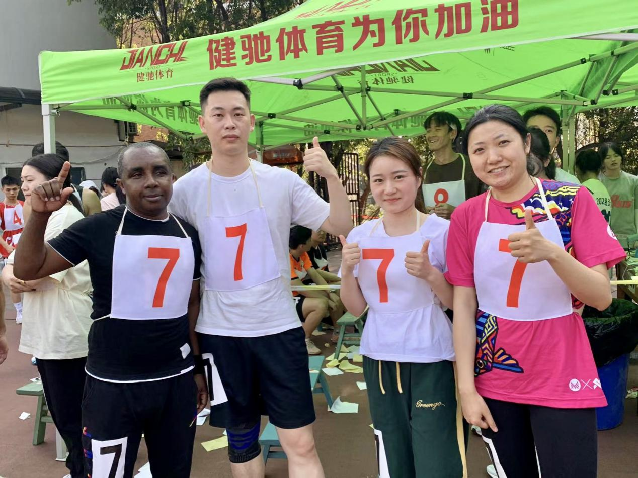 SOUFIANE MOHAMED、程若曦、史银天、苟思齐四位同学参加了混合4x100米比赛项目。小小接力棒,棒棒有力量,传出了默契,传出了期望。他们拼尽全力,把手中的胜利传给下一个人,最终取得了乙组混合第八名的成绩。