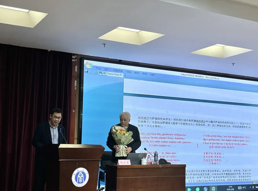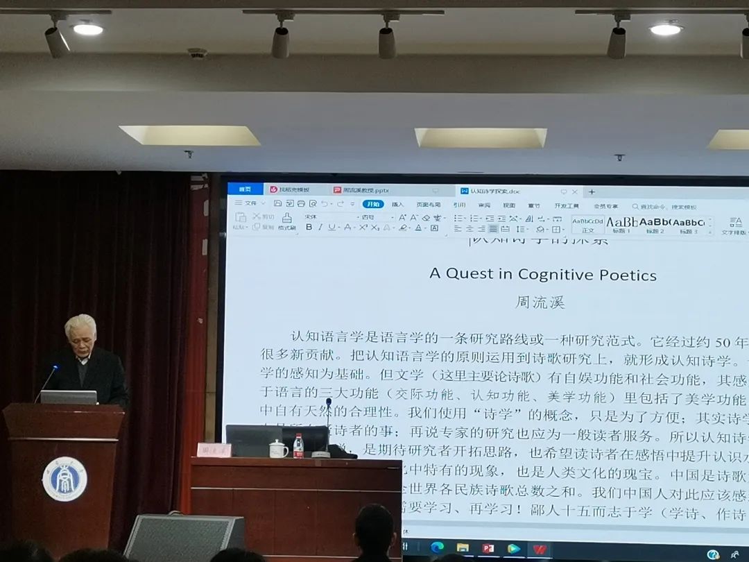 讲座伊始,周流溪教授便提出了,如何在认知语言学路线的启示下,从认知的角度对诗歌作品进行更准确的观察和思考这一问题。
