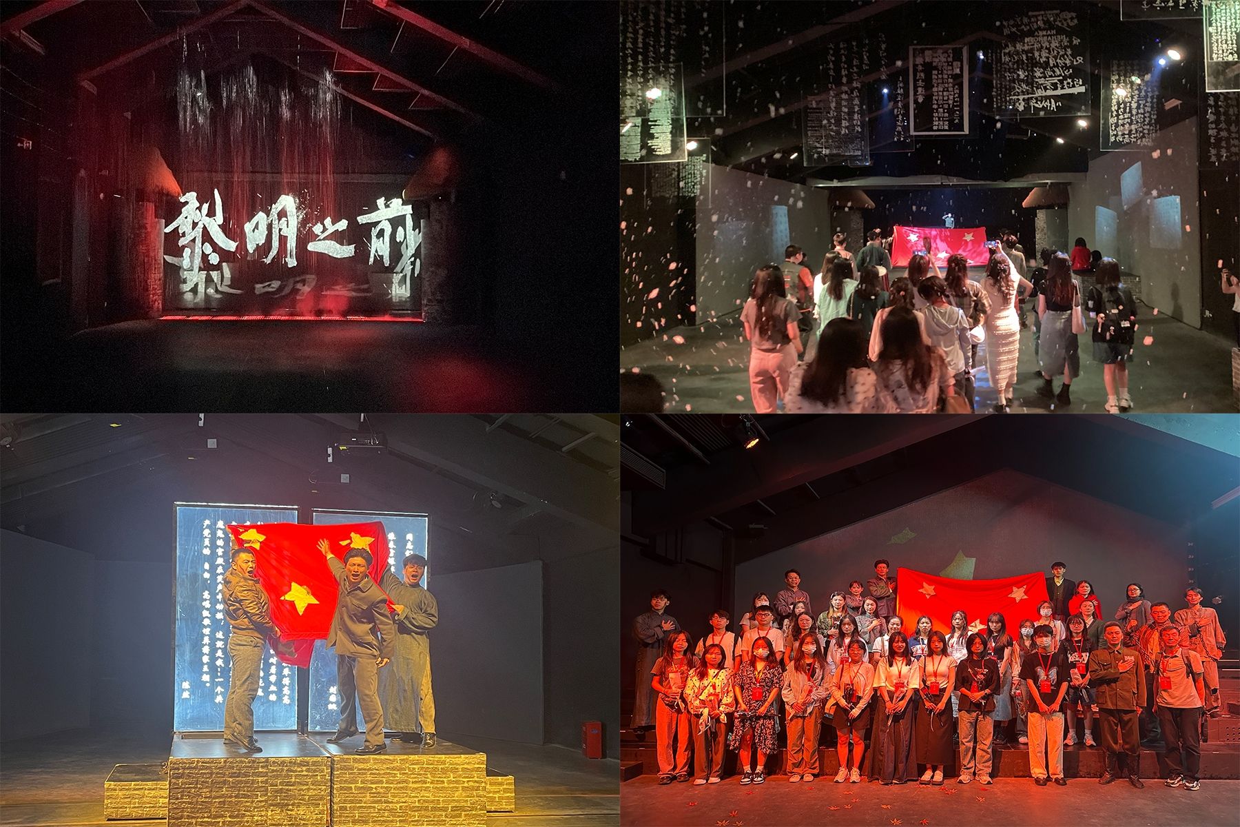 第二站,“红岩红”剧场。同学们一起沉浸式观看了情景式体验剧《黎明之前》,并走近实地缅怀烈士们的伟绩,追寻红色记忆,重回那段风雨如磐的革命斗争岁月,超越时空与烈士们进行心与心的对话,表达对党和国家深沉的爱。