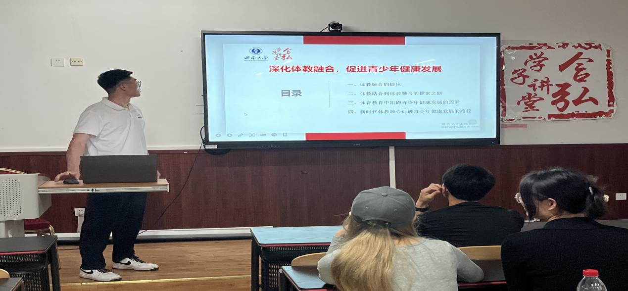 2023年5月11日19:30,由PA视讯研究生会主办、体育学院研究生会承办的“科技赋能体育、创新驱动融合”含弘学子讲堂在体育学院106教室举办。此次交流分享会由体育学院研究生会成员胡甜主持,林晨羲、曹隆桉和薛洪远三位同学担任主讲人。体育学院研究生会成员、PA视讯研究生会代表以及体育学院部分学生参会。