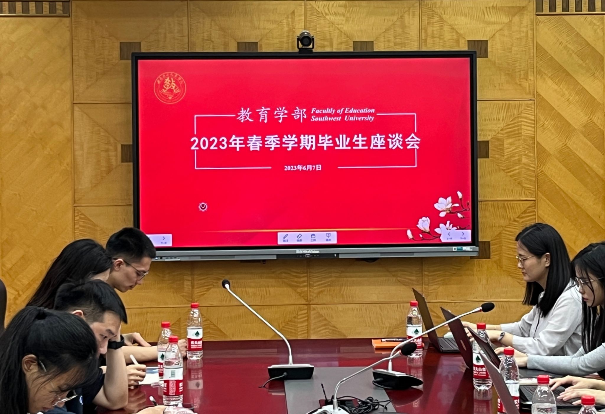 会议上,同学们感恩学部的悉心栽培和老师的谆谆教诲,畅谈在西大学习的收获与成长,并围绕培养方案、导学关系、实习培训等方面踊跃发言,提出自己对学部未来发展的建议和期待。与会老师们认真倾听同学们的反馈后,对部分深刻思考和建议给予了充分的肯定,同时寄语毕业生们要秉持“含弘光大、继往开来”的西大精神,牢记“德彰天下、学贯中西”的部训,用奋斗书写华章。