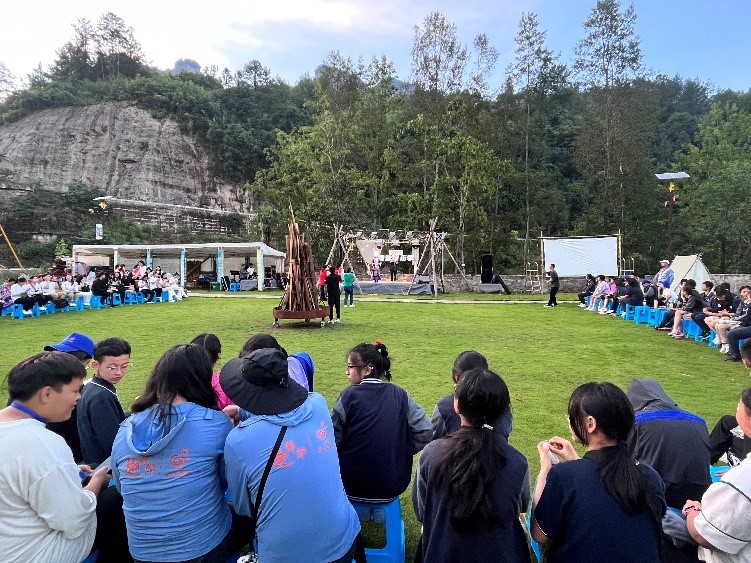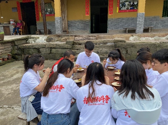 宣讲结束后,实践小队在村民的带领下学习了当地的村歌《太阳出来喜洋洋》以及特色的摆手舞,同时于晚间参加了当地的村民与数据谷学校举办的篝火晚会。在晚会上,来自不同地方的游客与当地村民们载歌载舞,营造了温馨和谐的氛围,也充分凸显了华溪村质朴热情的风土人情。这既是新时代幸福生活的鲜活缩影,也是乡村振兴伟大之处的深刻映照。