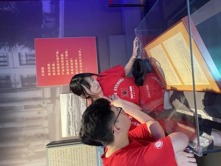 随后,队员们透过展览柜中的文字、影像、服饰等文物,认真学习了解了赵一曼同志“启蒙·抗争”“觉醒·磨练”“抗战·救亡”“坚贞·殉国”“铭记·奋进”的传奇一生。特别是在看到赵一曼同志留给年仅八岁儿子的家书时,队员们纷纷都泪湿眼眶。实践队队员王爱玲表示,这封家书饱含着一位母亲对儿子的爱、思念、不舍和愧疚,她把自己对党的忠诚、对革命的信念、对抗日的决心,用自己的行动和牺牲,给儿子最后一次示教。