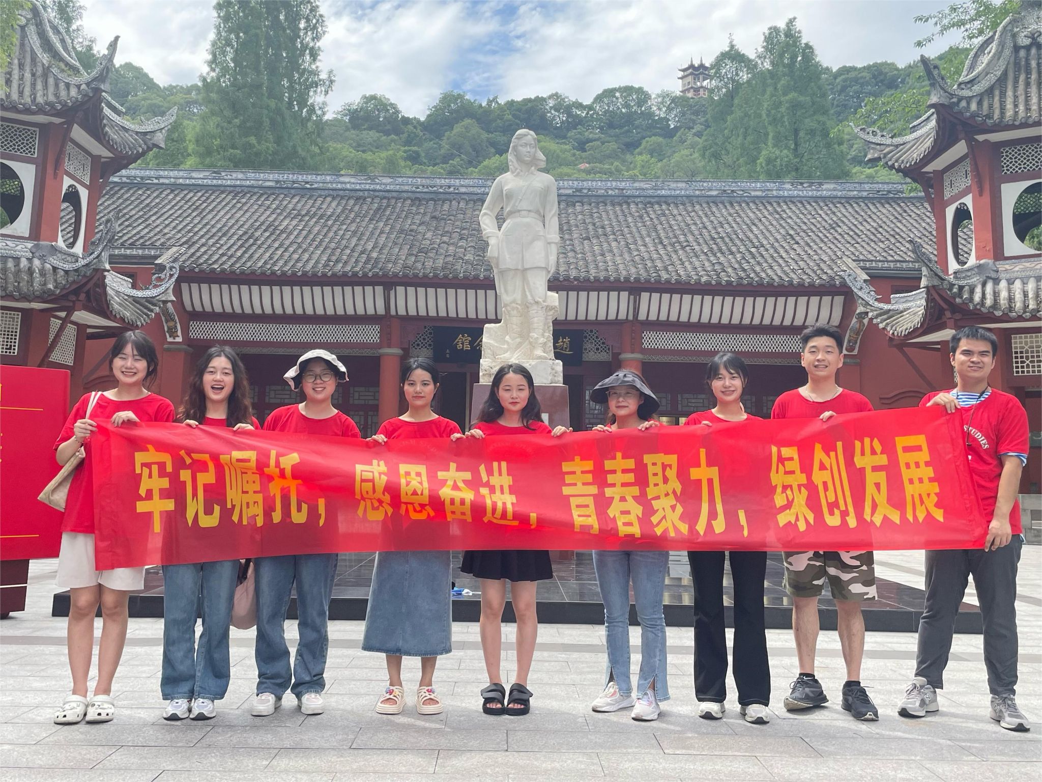在进入纪念馆前,队员们先在赵一曼雕塑前宣读入党誓词。参加本次实践活动的所有党员用铿锵有力,掷地有声的誓言坚定了对马克思主义的信仰、共产主义的信念。
