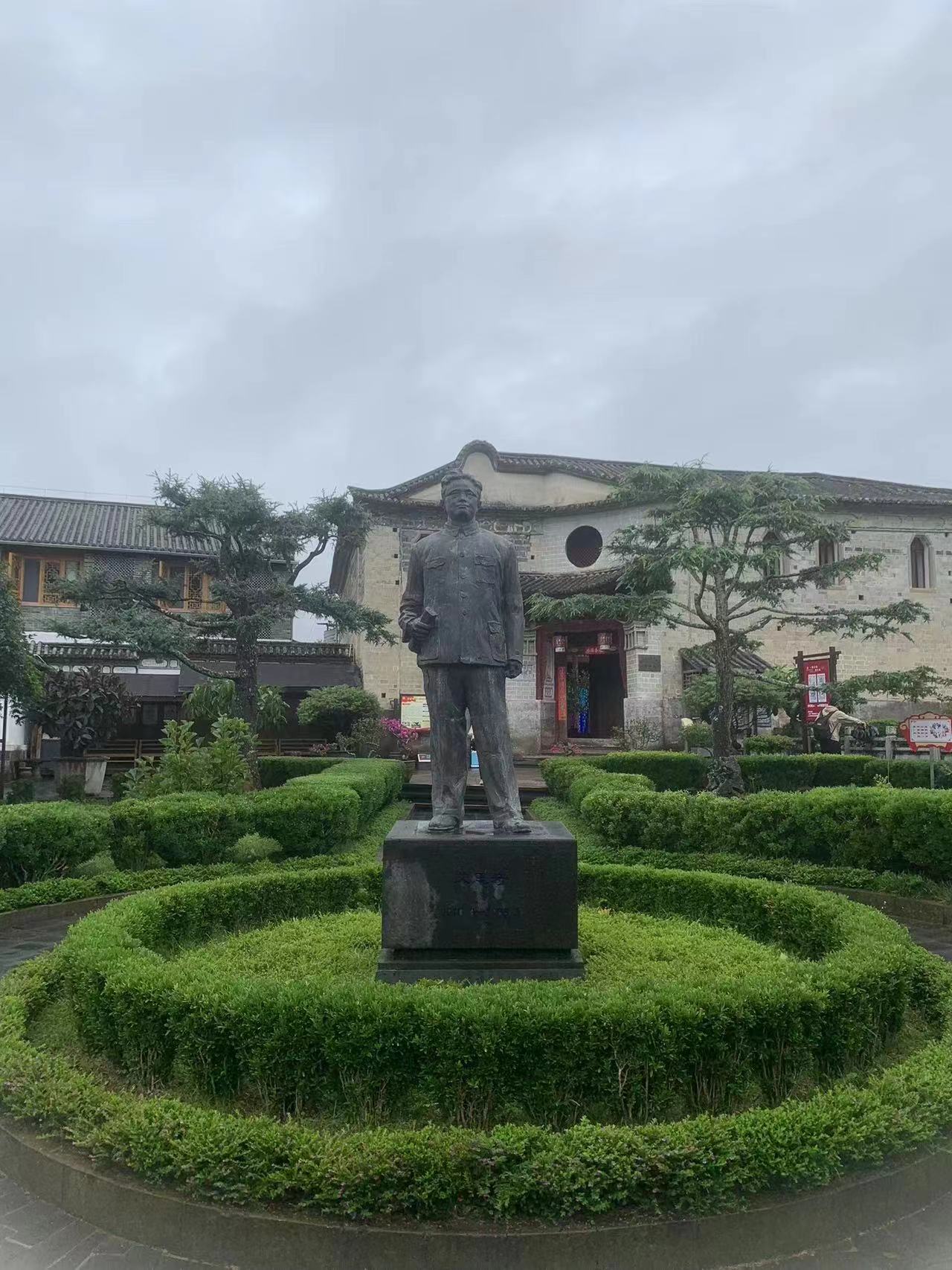 下午,实践队队员来到崇文重教的著名侨乡和顺古镇。恰逢雨季,队员们虽感行路不便,但朦胧烟雨中的和顺古镇别有一番江南水乡的风韵。沿着习近平总书记的足迹,队员们首先参观了和顺图书馆,了解到它源起于五四运动时期旅缅爱国侨胞成立的咸新社,并且有多位名人为其题字,如胡适和熊庆来等。随后,队员们来到艾思奇纪念馆,知悉了艾思奇的生平及其对马克思主义中国化研究做出的伟大贡献。毛泽东曾评价到,“艾思奇是党在理论战线上的忠诚战士”。习近平总书记也对其做出了高度评价,并强调由艾思奇所倡导的理论与实际相结合的精神要继续发扬光大。