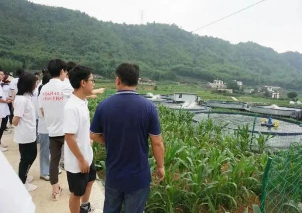 “夯实粮食安全根基,端牢中国饭碗”的字样屹立于龙头镇武宁寨村的田埂之间,实践队先后走访了龙华村名优水产养殖基地、北村高位池养殖基地、武宁寨村高标准农田稻渔综合种养示范区。在村镇领导和养殖大户们的带领和介绍下,实践队成员们了解了当地集约化养殖的运营概况、名优鱼类的效益收入、高位池养殖的基本现状和运作方式,以及高标准农田布局和稻渔综合种养示范区的运行情况。
