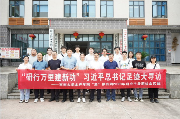 为将学习贯彻习近平新时代中国特色社会主义思想走深走实,深学笃行党的二十大精神,积极实践响应人与自然和谐共生的中国式现代化和加快建设农业强国、推进农业农村现代化的号召,水产学院“渔”你有约研究生社会实践队紧跟习近平总书记的调研足迹,在学院党委副书记刘一丹、辅导员祁礽、尹斌,专业教师吕光俊、罗辉的带领下,于2023年7月3日赴四川宜宾进行为期3日的研究生暑期社会实践活动。