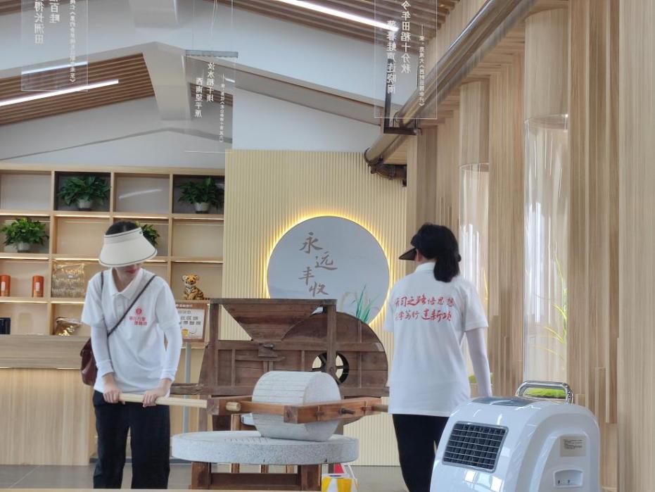 随后,队员们来到三楼“永丰论稻厅”。这里分为追根溯稻、寻香问稻、深耕传稻三个单元,展示了稻作文化,提供了打卡体验、科普了手作展览,打造了水稻研学体验空间。“五谷者,万民之命,国之重宝。”通过参观“永丰论稻厅”,队员们不仅丰富了水稻种植知识,也提升了粮食安全意识。