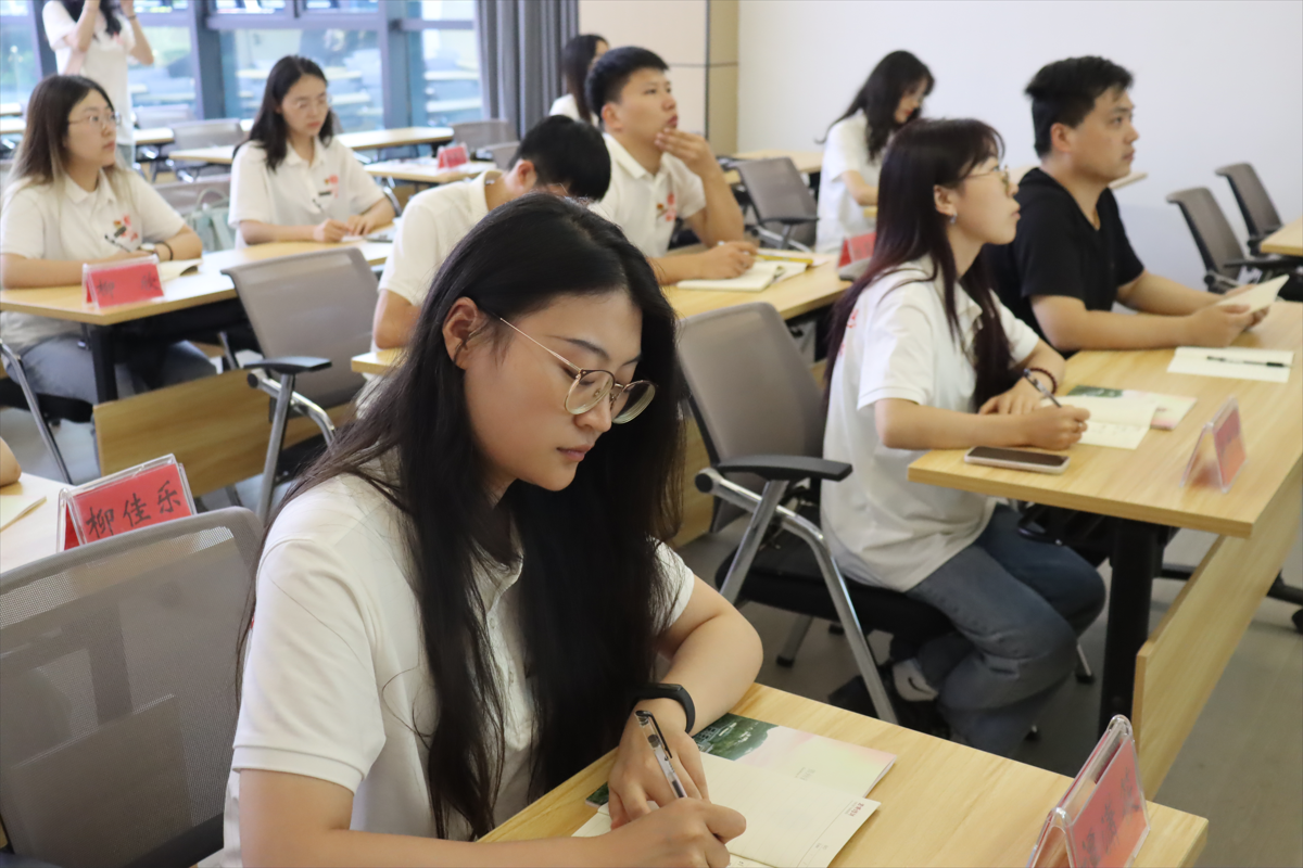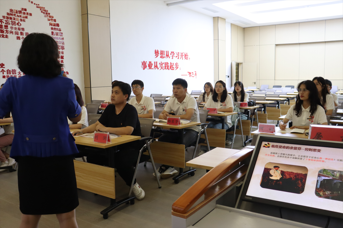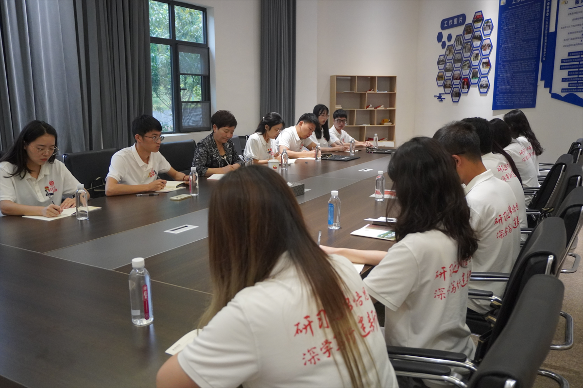 7月27日,在岩博现场教学基地的会议室中,由党委研究生工作部刘润老师带领学员们与“全国脱贫攻坚奋进奖”、“全国五一劳动奖章”获得者、党的二十大代表、岩博村党委书记余留芬展开访谈。先是刘润老师以“感谢”“感触”“感悟”三个词开场,向余书记介绍了“研行万里建新功”暑期实践队的总体情况。随后,余书记结合自身经历,向学员们深情讲述了她团结带领乡亲们将过去“穷山恶水”的岩博村建设成为如今产业兴旺、生活富足的示范村的艰辛奋斗历程。余书记在讲述过程中给同学们了几点建议,“面对困难积极寻找解决办法”,“要有远大理想,为社会创造价值而活”,“心中没有杂念,纯粹的时候就是最强大”,“人要学会接受结果”。