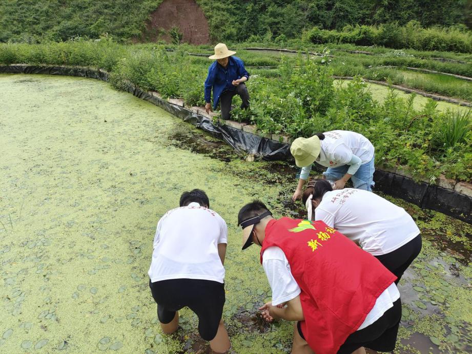 7月11日下午,实践队伍分为三个小队前去拜访当地的老党员。其中,王依婷,周添,万正娇,王雨童小分队前往慰问谭文祥同志,队员们到达时,年过花甲的谭文祥同志还在黄精田里忙活。他向队员们细心讲解了石柱特产黄精,让队员们对黄精的种植情况有了较为深入地了解。在参观完黄精产地后,谭文祥同志高挽裤腿,头顶烈日,带领小分队的成员们参观了莼菜田,耐心地演示并指导大家进行采摘。在离开之前,谭文祥同志还热情地带着队员们前往房屋后摘李子,用实际行动表达了老一辈党员对青年学子的亲切关怀。