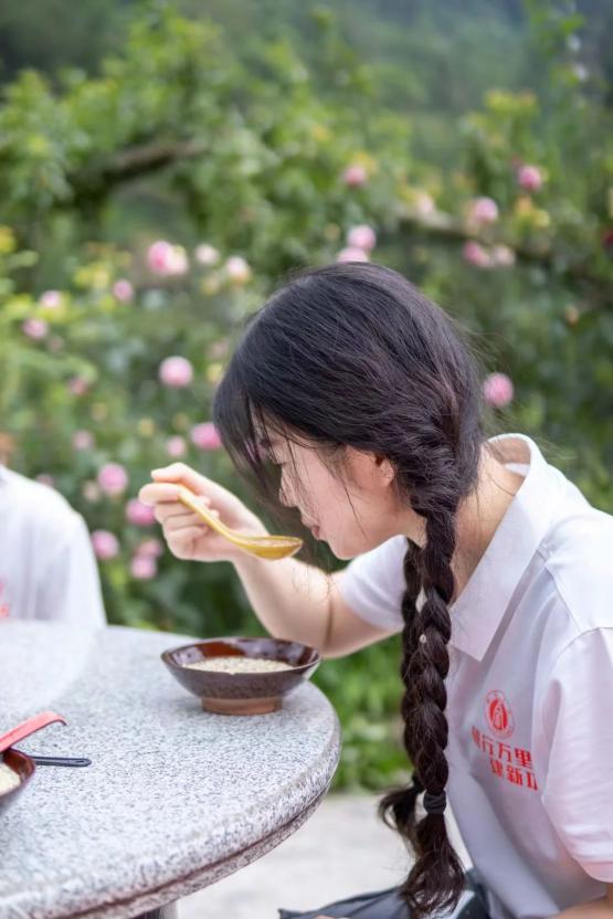 7月12日下午,实践队伍来到了坐落在中益乡华溪村的初心小院。实践队首先拜访了老党员马培清奶奶,并与其展开了亲切交谈。在和马培清奶奶的对话中,队员们了解到了华溪村这些年脱贫攻坚的发展历程,同时马培清奶奶也对青年队员投身祖国建设事业表达了殷切期盼。期间,队员们还品尝了土家族非遗美食“幸福米米茶”,华溪村村民的生活正如这碗茶,愈发甜蜜与幸福。