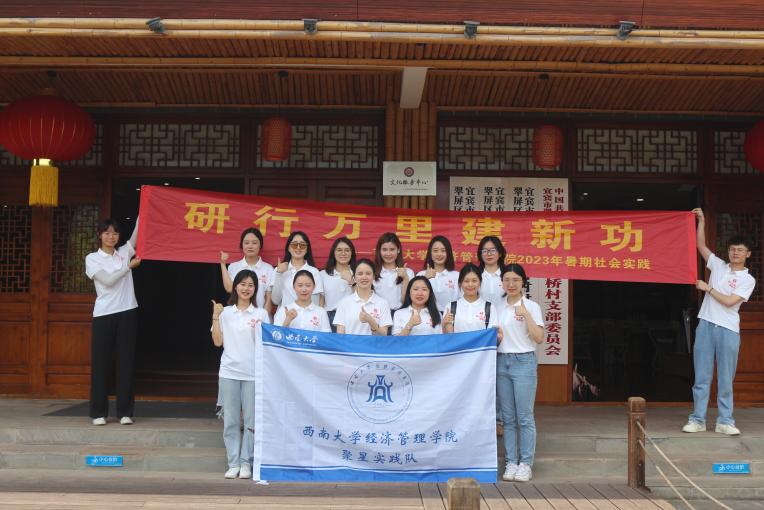 为深学笃行党的二十大精神,推动学习贯彻习近平新时代中国特色社会主义思想走深走实,引导广大研究生上好与现实相结合的“大思政课”,在社会课堂中“受教育、长才干、作贡献”,在中国式现代化新征程中厚植爱国情怀,书写青春华章,7月初,经济管理学院·聚星实践队追寻习近平总书记的足迹前往四川省宜宾市,在宜宾市高桥竹村、李庄古镇、三江口等地先后开展了乡村振兴调研、社区科普宣传、生态保护调研等暑期社会实践活动。