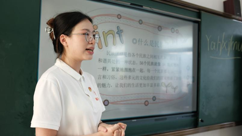 作为民族文化传承的践行者、维护者,“石榴籽”暑期社会实践队在化屋村小学开展民族团结主题宣讲活动,围绕基本内涵、现实意义与实践路径三大板块,上了一堂别开生面的“思政课”,帮助小朋友们树立传承民族文化的正确价值观,赓续民族精神血脉,铸牢中华民族共同体意识。