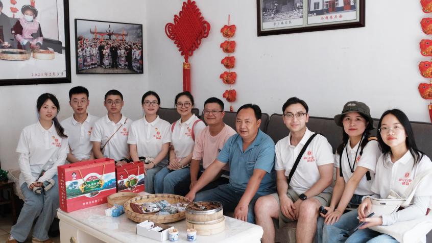 与此同时,化屋村还大力推广地方特色小食——黄粑。实践队沿着习近平总书记的足迹,前往了习近平总书记曾走访的赵玉学一家。回忆起习近平总书记看望他们一家时的情景,赵玉学倍感温暖。赵玉学这样说道:“以前化屋村穷困不堪,一副穷乡僻壤的荒凉景象,但正是扶贫政策的落地,才让这个穷困村落焕发生机,有了翻天覆地的变化。”在习近平总书记到访调研后,赵玉学抓住了机遇,不仅注册了“赵玉学黄粑”商标,生产销售特色美食——黄粑,还将自家房屋改造成农家乐,收入愈发稳定,日子越过越好。“化屋村和黄粑产业的发展不是我一个人的功劳,更重要的是习近平总书记的恩情”“黄粑产业的发展要对得起习近平总书记、对得起人民”赵玉学追忆这些年的发展历程时不禁感慨道。