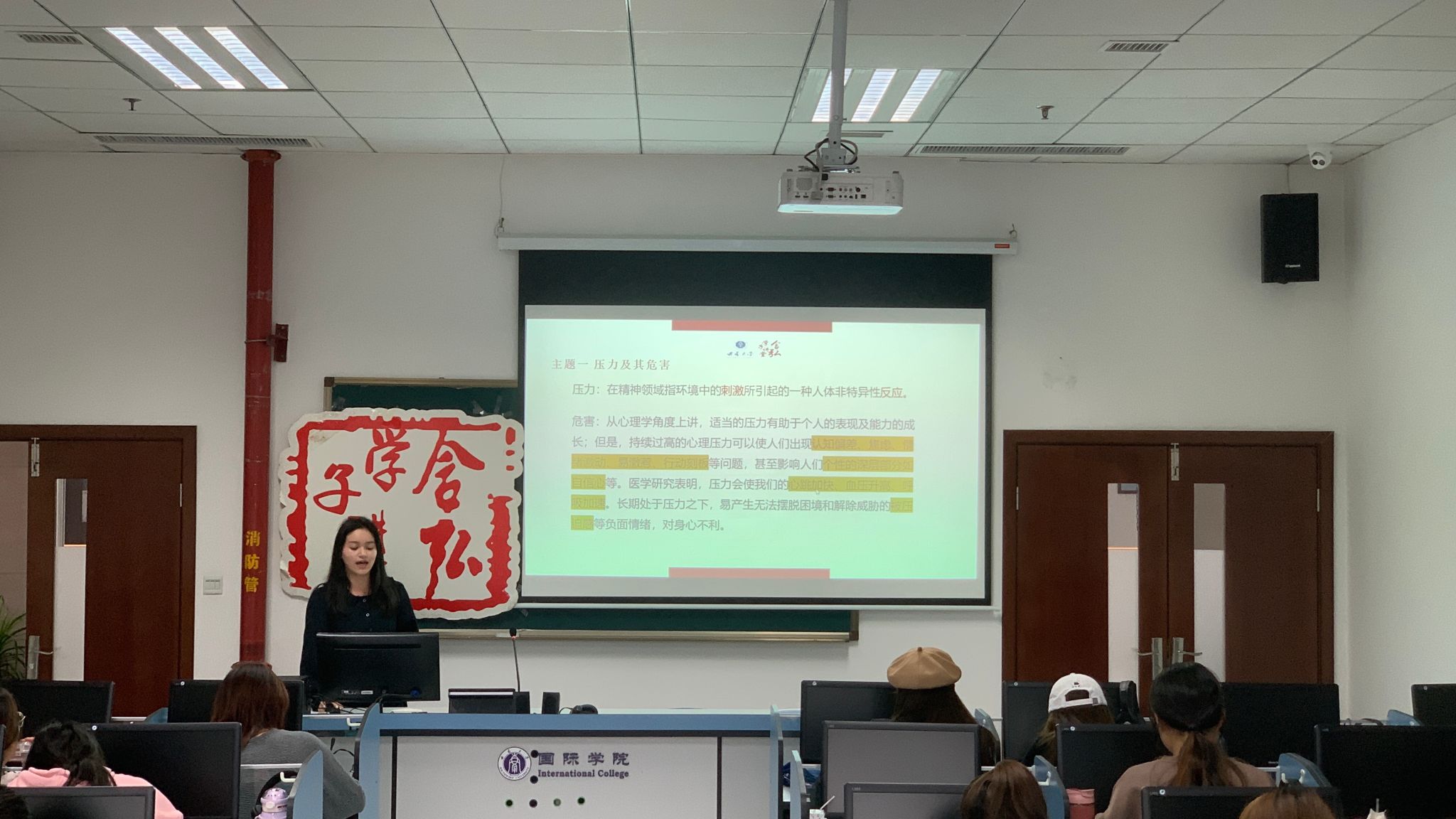李丽冰同学宣讲的题目是“挣脱压力,坚定自我”,在正式宣讲前,她首先通过展示压力图片,进行了几个压力测试的小游戏,激发同学的兴趣并引出宣讲内容“压力”。其次,从压力的来源、缓解压力的措施、话语总结三方面进行宣讲,倡导同学们正确的看待压力,采取积极的措施应对压力,并为同学们提供了几个缓解压力的措施,帮助同学们更好地了解压力并释放压力,以更加积极的心态面对来自生活和学业上的压力。最后借王阳明之言,她鼓励同学们正确看待情绪变化,以更昂扬的热情迎接每一天。