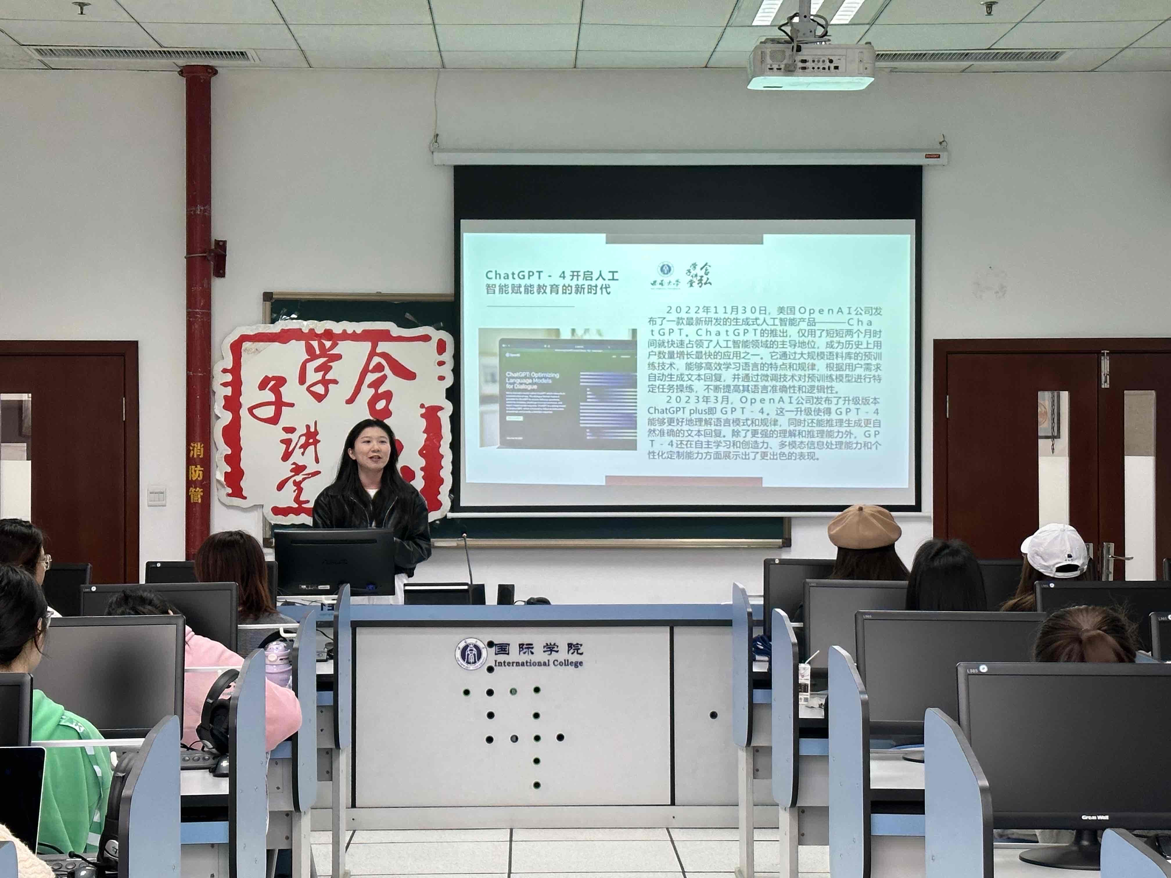 何斯佳同学从ChatGPT与国际中文教育的主题出发,首先介绍ChatGPT与国际中文教育新时代下的背景并从学习者、教师、专业与教学三方面指出ChatGPT为国际中文教育带来的机遇。何斯佳同学通过讲述传统语言教学模式受到的挑战、学习者自主学习的能力受到的挑战以及不当使用ChatGPT产生的问题指出ChatGPT为国际中文教育带来的挑战并从四方面提出国际中文教育面对人工智能的应对策略。最后,她将ChatGPT与本专业联系起来,认为技术的创新与发展应共通融合,教师和学生应该以积极开放的态度适应时代浪潮,提升自我素养,才能更好地促进人工智能在专业的发展。