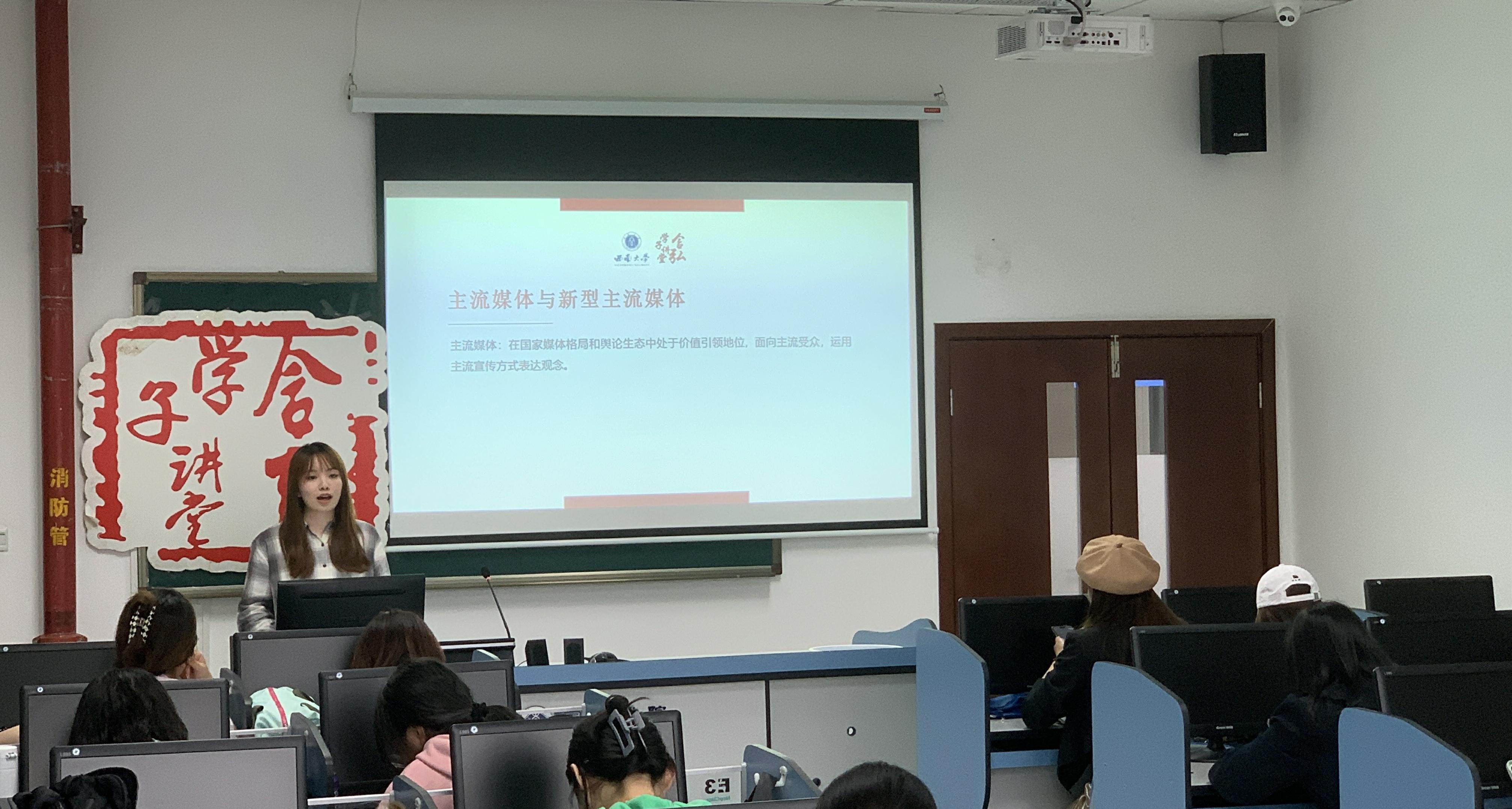 陈雨馨同学以新媒体时代新型主流媒体建设为宣讲主题,首先,从概念、形态、内容方面介绍并对比了主流媒体与新型主流媒体的联系与差异。其次,从背景出发,提出了建设新型主流媒体的必要性,认为新型主流媒体是时代的产物并从技术应用、内容生产两个角度介绍新型主流媒体的发展路径,认为新型媒体建设应以技术为支撑,驱动主流媒体产品创新升级,推出有思想,有温度的高品质作品。最后,陈雨馨同学倡议新型主流媒体建设应将理论与实践结合,并以媒体人开阔的视野去探索真相背后的脉络。
