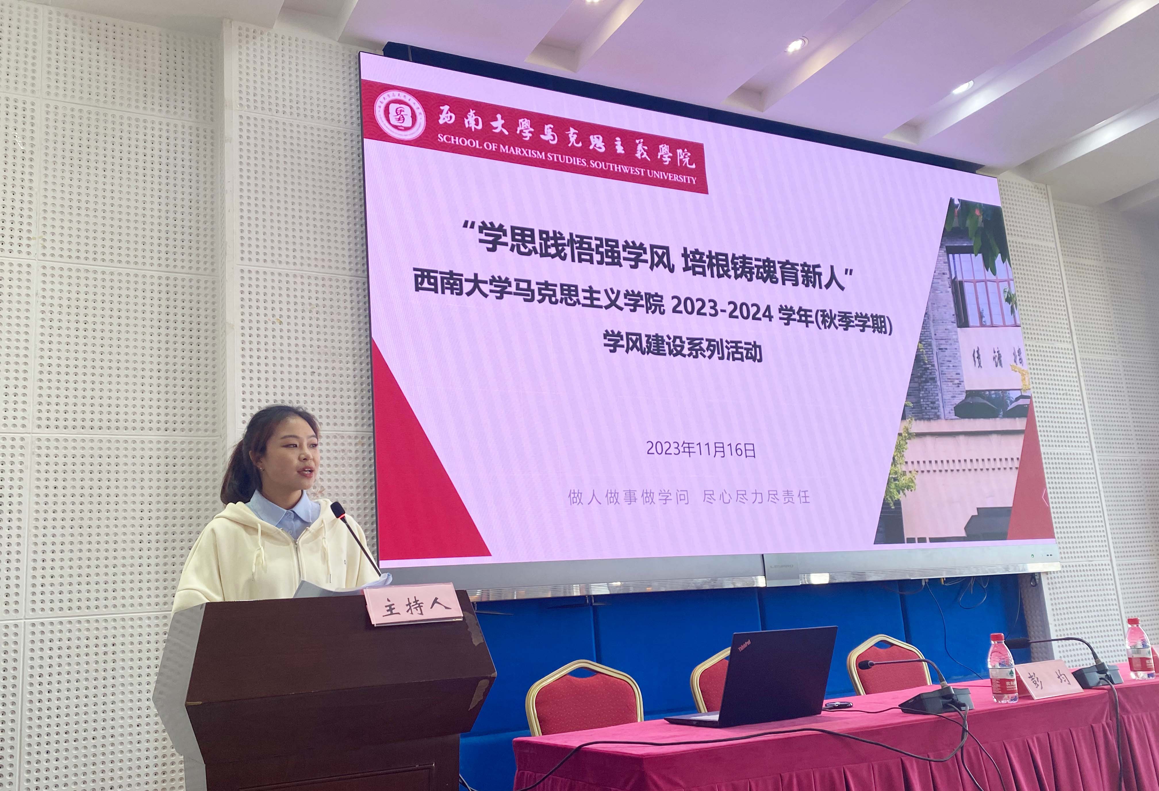 为深入学习贯彻习近平新时代中国特色社会主义思想,全面落实党的二十大精神、全国研究生教育大会精神,切实加强我院研究生的科学道德和学风建设、更好地开启科研之路,并营造良好的学术科研氛围,2023年11月16日,马克思主义学院学术道德与榜样人物学术沙龙活动于学院501报告厅顺利开展。马克思主义学院研究生辅导员黄林、2020级博士研究生彭均以及学院2023级硕士研究生全体成员参与活动。本次活动由马克思主义学院第十四届研究生会学研部工作人员宋佩格主持。