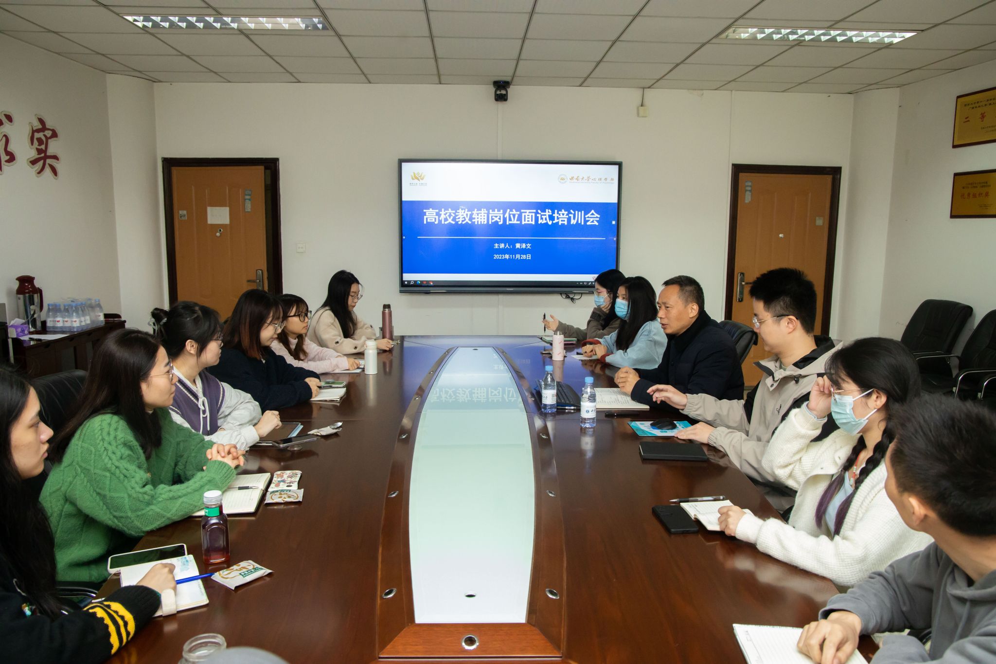 2023年11月28日上午,2024届硕士研究生高校教辅岗位面试培训会在学部202会议室顺利进行,学部党委书记黄泽文对就业意向为高校教辅岗位的硕士生进行面试培训,研究生辅导员刘智主持本次培训会。