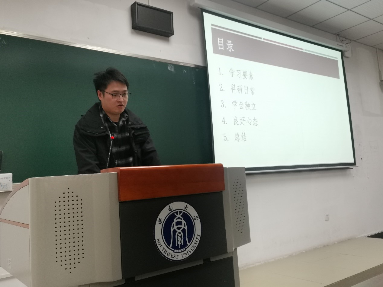 随后,学院2021级博士研究生,2023学年国家奖学金获得者林东源为全体研究生就自己科研生涯中所用的科研方法进行了分享。林东源表示搞科研就要能耐得住寂寞,坐的了冷板凳,学会独立思考,关注理论与实践结合,要习惯将批判性思维应用到学术研究中。此外,他还呼吁同学们要学会合理安排时间,保持的健康生活习惯,心怀感恩,珍惜时光,在科研过程中保持一个良好的心态。最后,林东源通过“不念过往,不惧将来,不负当下”的格言,对全体研究生致以深厚的祝福与期待,并解答了同学们的提问问题。