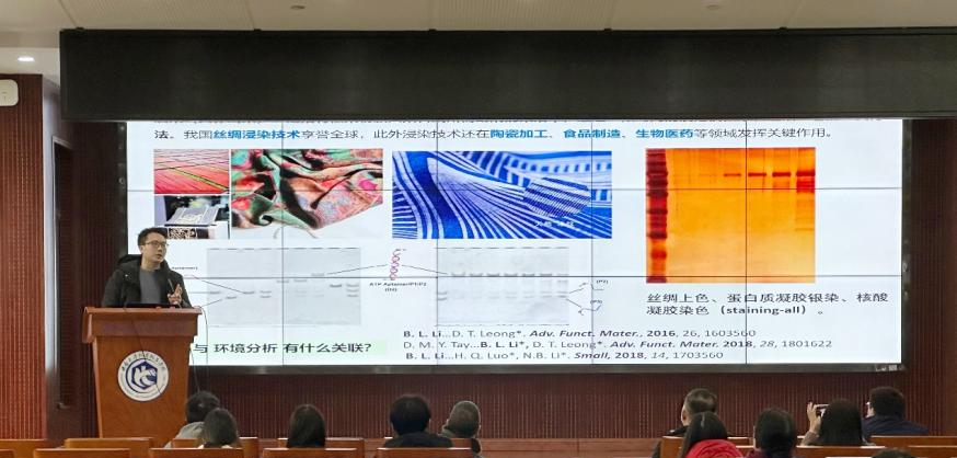 下午的学术报告同样精彩纷呈,首先,由郑鹄志教授主持会议,卓颖教授、何荣幸教授和魏晔教授依次上台发表报告:卓颖教授作题为《DNA/RNA表观遗传修饰的定量分析与原位成像》的报告,从微观层面上向大家介绍如何在生物细胞中实现应用;何荣幸教授作题为《CO2与NO3-共还原合成尿素的催化剂设计与机理探索》的报告,从设计思路到机理研究层层解读,让同学们收获颇多;魏晔教授作题为《亚胺自由基介导的(不对称)环化反应》的报告,带领同学们就环化反应这一研究深度学习。接着,甘利华教授主持会议,王明教授作题为《电磁防护高分子复合材料》的报告,为大家介绍电磁防护高分子材料;赵刘斌教授作题为《电化学界面反应动力学研究》的报告,仔细讲解了反应过程中的奇妙之处;甘霖教授作题为《生物质纳米材料的跨尺度结构调控与高值利用》的报告,所介绍的调控与利用纳米材料尺度结构让大家收获颇多。最后,任文山教授主持本次会议,陈亮教授、陈强博士和袁若教授依次上台进行报告。在《刺激响应聚合物的构建及其功能组装材料》中,陈亮教授用细致的讲解,清晰明了的阐释其科学原理;陈强博士作了关于《光酶级联微反应系统以及多位点弱力桥接的无载体酶固定化策略》的报告,这是他在清华大学期间的重要科研成果;袁若教授就《国家自然科学基金申报辅导》报告,在一定基础上更深、更详细的讲解自然科学基金申报的方法与要求。