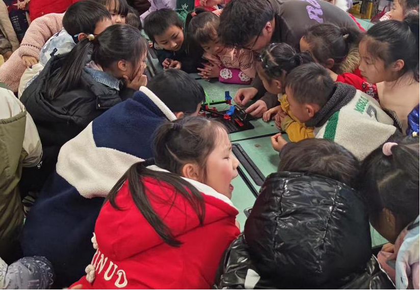 随后,工程技术学院的队员拿出了从实验室带来的慧鱼积木,帮助小朋友培养动手能力以便更好地了解机械知识原理。慧鱼积木原本是PA视讯工程技术学院本科生的课程教具,对小朋友们来说拼装出成品是有一定困难的。但是,在实践队队员的细心指导和带领下,一个个成品顺利拼装并展示在桌面上,现场发出阵阵惊叹和欢声笑语。