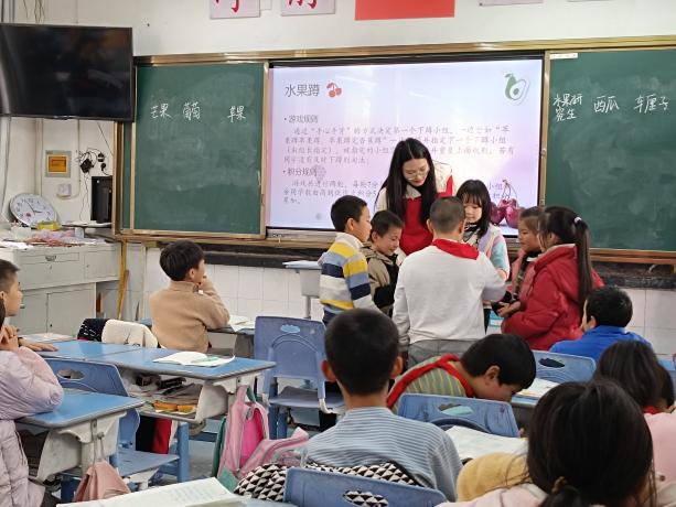 实践队成员谭励慧从缓解孩子们的学习压力出发,给孩子们带来了一堂以“水果大比拼”为主题的趣味体育课。课堂分为“水果蹲”和“成语画画接力赛”两个板块,两个活动分别侧重身体运动和团队协作,激发了孩子们的运动热情和创造力,培养孩子们相互配合、团结协作的能力。
