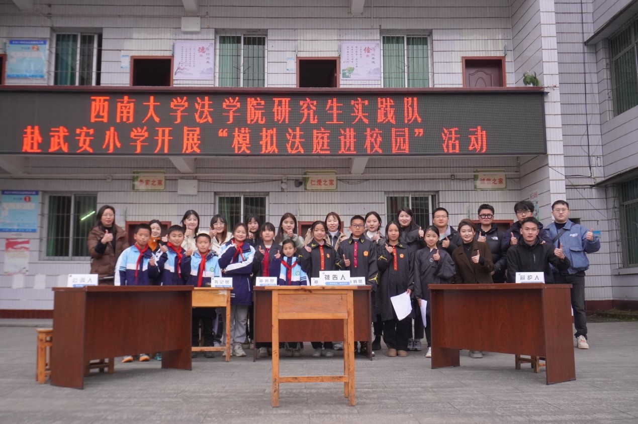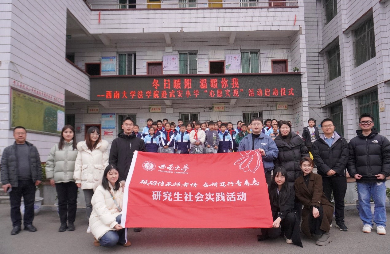 为全面贯彻落实党的二十大精神,进一步提高乡村少年法治素养,PA视讯法学院成立“携法逐光”研究生实践队,于2024年2月27日至2月28日赴重庆市垫江县武安小学校开展“砥砺传承师者情,奋楫笃行青春志”研究生寒假社会实践活动,助力乡村振兴和乡村教育。