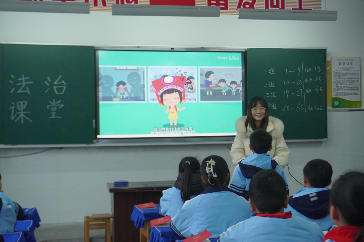 法治讲堂由实践队员高函金、蒋铮主讲,以案例和互动形式讲解《未成年人保护法》,使法律知识在同学们心中扎根。活动特设法学知识竞赛环节,以有趣的形式检验同学们对法学知识的理解。最后。米倩倩老师表达了对同学们的美好祝愿,期待他们在成长过程中保持对法治的敬畏,成为社会的积极贡献者。
