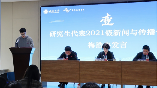 启动仪式上,学院2021级新闻与传播专业研究生、国家奖学金获得者梅浩冉结合自身的学术科研经验,向同学们分享了自己的心得与感悟,呼吁同学们秉持“专注过程,接纳结果”的积极心态,勇于超越自我,不断在学术的道路上砥砺前行,书写属于自己的精彩篇章。