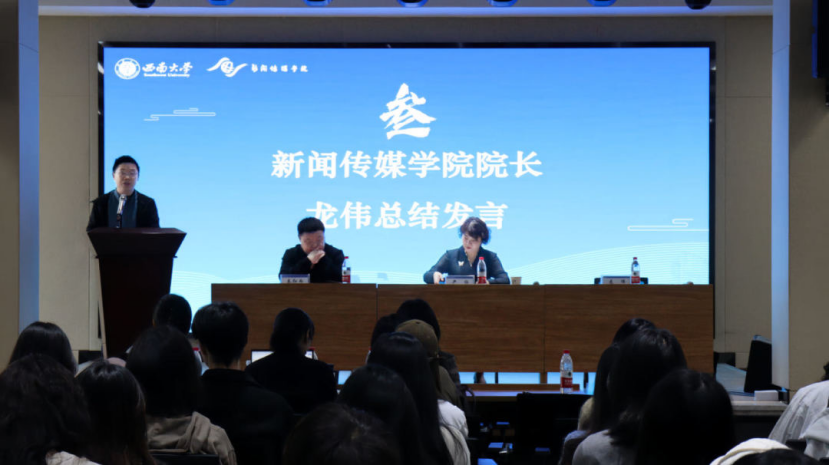 学院院长龙伟教授总结讲话并宣布了《新闻传媒学院研究生学术科研成果奖励办法(试行)》,他从学风建设活动开展的及时性与必要性、学术论文的底线要求以及阅读的关键性三个方面,对学院全体研究生寄予了深切的期望。龙伟院长强调了恪守学术道德、遵守学术规范的重要性,鼓励学子广阅博览以开阔眼界,在专业领域深耕细作,笃行致远。