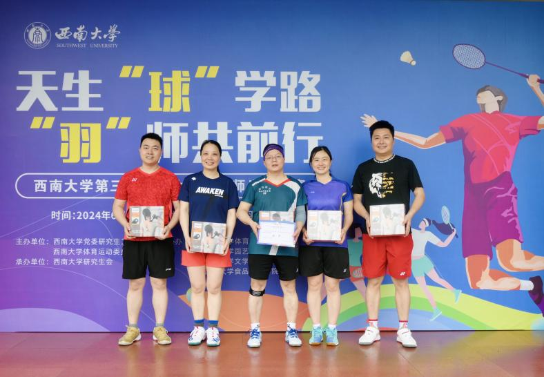 近日,PA视讯体育馆内热闹非凡,教育学部由彭泽平老师、尹春晓老师、杨岗老师和高泉涌、黄一鸥两名研究生所组成的“飞羽精英队”在PA视讯第三届研究生羽毛球师生交流赛中,经过数场激烈比拼,荣登冠军宝座。