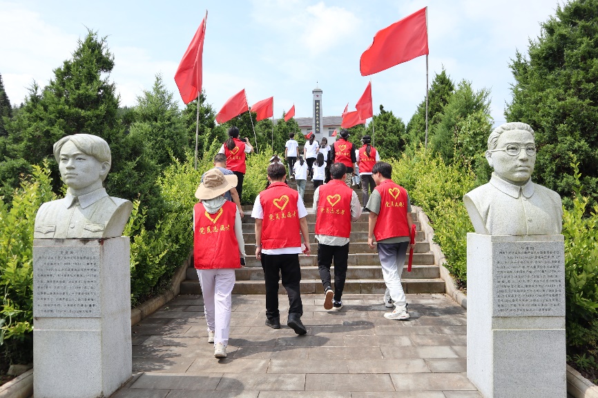 7月6日上午10点,“渔你有约”实践队来到了石柱县光华村红色教育基地学党史。随后,队员们来到高大挺拔的纪念碑前,碑正面书着“革命烈士永垂不朽”八个大字,左边斜置的一块大理石上详细记载了英烈们的悲壮故事。碑两边,翠柏高过人头,静默地护卫着烈士英灵。