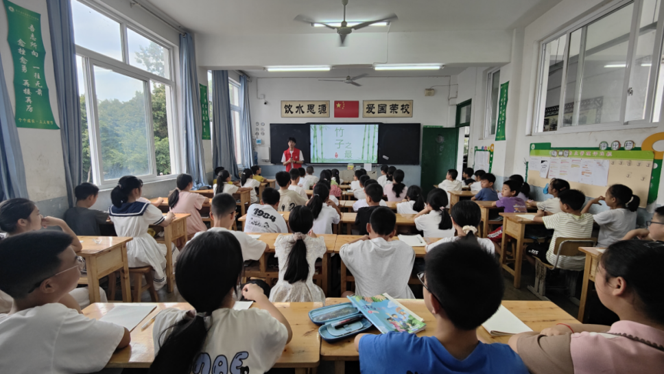 7月4日,教师教育学院师元实践队20名队员,开展了“小小科学家”暑期成长营教育活动。队员们将竹文化与语文、数学、物理等多学科融合进行课堂设计,在五年级7个班级中讲授课程。本次实践活动不仅为学生们提供了一个跨学科、全方位的学习机会,帮助他们在生活周边探索体悟知识,增长见识,激发他们的求知欲和创造力,更是加深了学生对竹文化底蕴和传承的理解,传递了世代相传的文化智慧和美好愿景。侯光炯小学将继续通过类似的教育活动,引导学生们深入理解和传承中华优秀传统文化,为学生的全面发展助力。