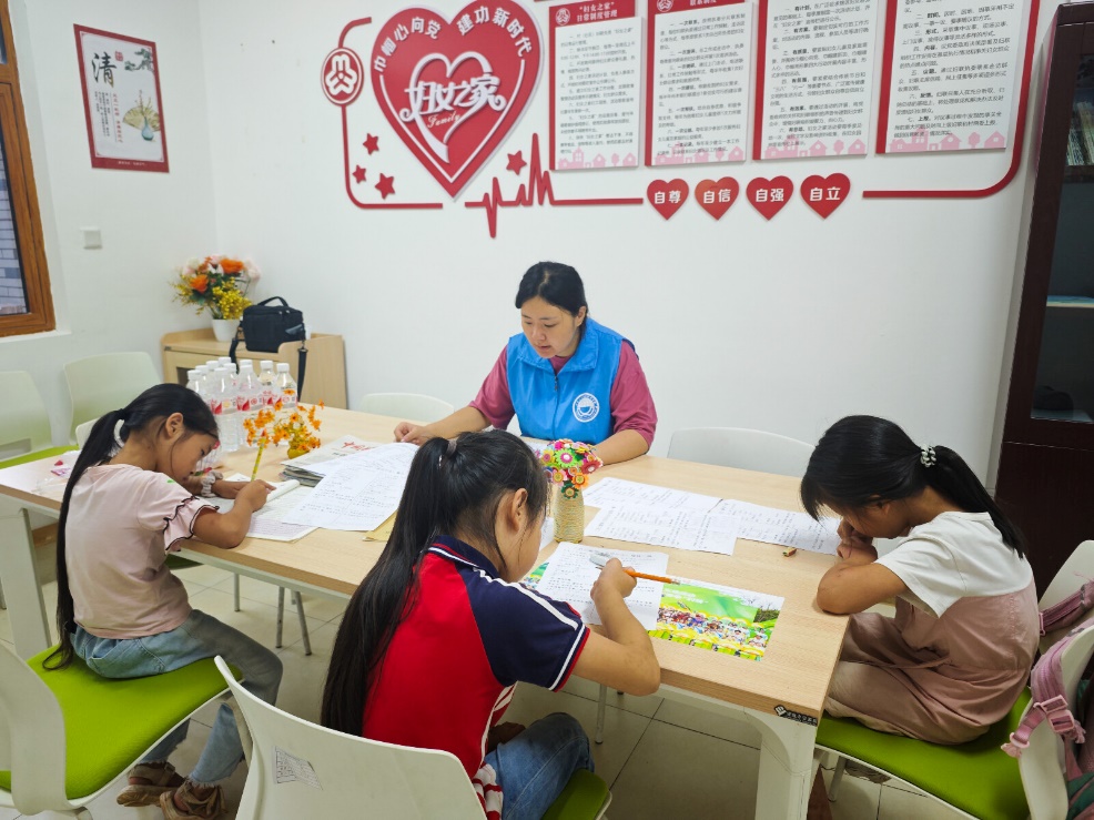 7月13日,科普趣味课程结束后,实践队队员们对保合村的小朋友们进行了学业辅导,帮助他们在学习中取得进步。支教组王文慧提到:“三下乡让我有机会与那些天真烂漫的孩子们共享知识的快乐。我发现,孩子们的世界如此纯粹而有趣,他们对世界充满了好奇和热爱。”