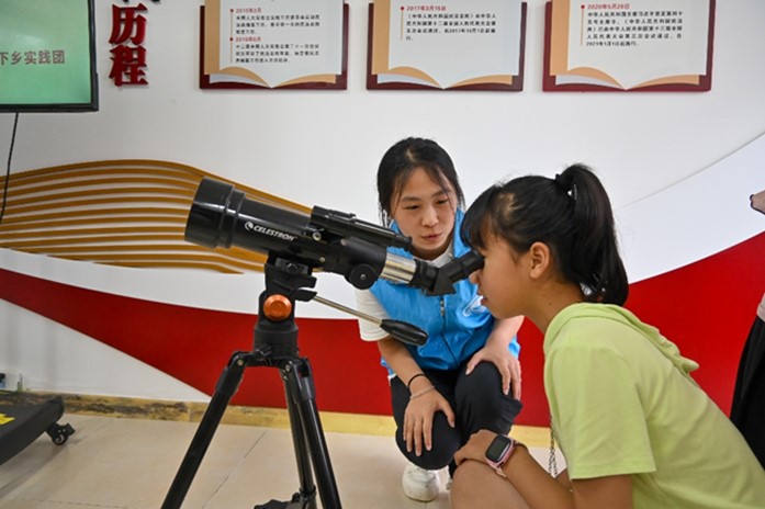 7月13日,实践队开展了地理科普趣味课堂活动。首先,队员们向保合村的小朋友们介绍了长寿区的自然环境和植被资源,随后开展了天文科普课堂及天文观测活动,向小朋友们讲解了天文知识,并且鼓励他们自己亲身体验天文观测,将理论与实践相结合。队员们期望能够用所学的专业知识、通俗的语言以及轻松的课堂引导孩子们了解地理、学习地理、热爱地理。课后,实践队将科普课堂所需的材料整理汇总后发送给村委会,以期能为保合村后续组织科普课堂贡献出自己的力量。