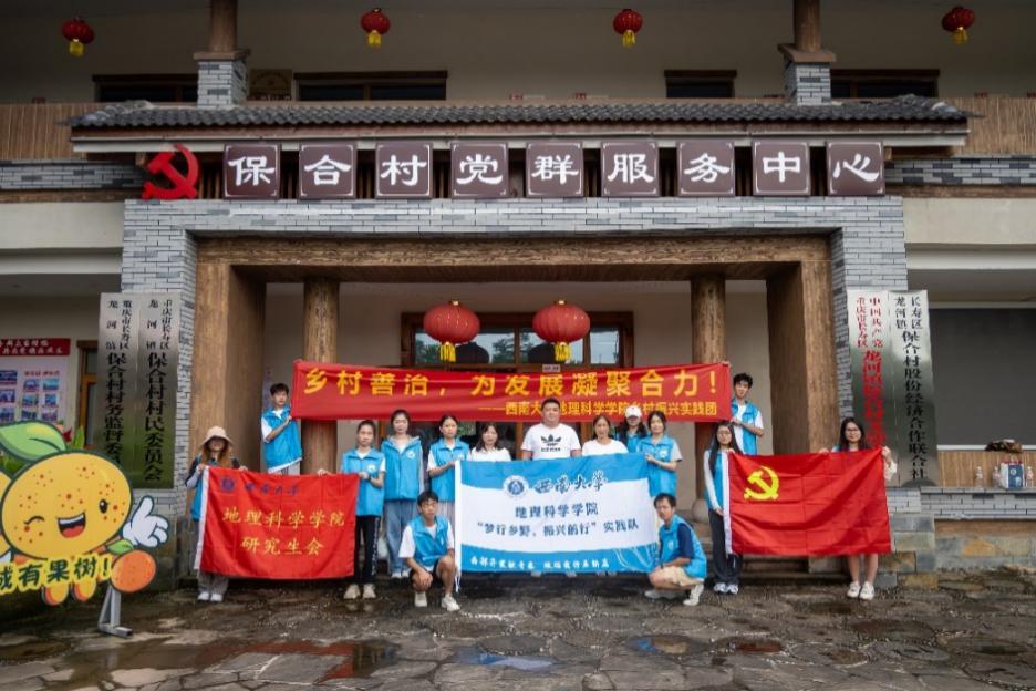 为贯彻落实党的二十大精神,深刻领会习近平总书记主持召开新时代推动西部大开发座谈会的重要讲话精神和在重庆考察时的重要讲话精神,引导广大研究生主动将个人理想融入党和国家的事业当中,以持续奋斗绘就青春底色,以无私奉献铸就时代华章。2024年7月11日至7月14日,PA视讯地理科学学院“梦行乡野,振兴前行”研究生暑期社会实践队前往重庆市长寿区龙河镇保合村,开展2024年暑期社会实践活动。