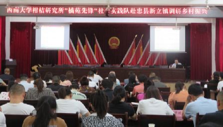7月10日,实践队邀请到柑桔研究所的柑橘产业专家李鸿筠副研究员与何义仲副研究员同行,在新立镇政府的支持下,举办了关于柑橘夏秋病虫害防治和夏季轻简化栽培技术的专题培训会。