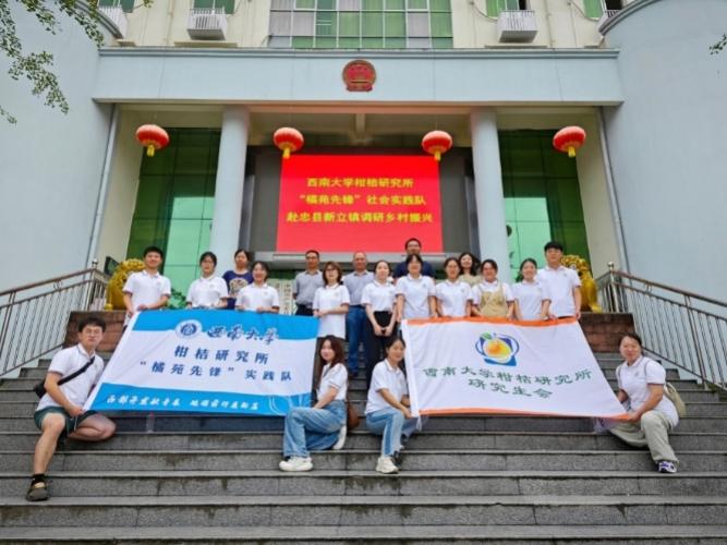 为深入学习贯彻党的二十大精神,推进学习贯彻习近平新时代中国特色社会主义思想主题教育,PA视讯柑桔研究所“橘苑先锋”实践队于2024年7月9日至11日赴重庆市忠县新立镇开展了以“西部开发献青春、砥砺前行展新篇”为主题的暑期社会实践活动。此次活动紧扣乡村振兴主题,通过座谈交流、问卷调研、培训学习、参观考察等形式,帮助广大研究生在社会实践中锤炼品格、增长才干,不仅加深了同学们对乡村振兴的理解,更激发了他们投身国家建设、服务社会的热情与责任感。